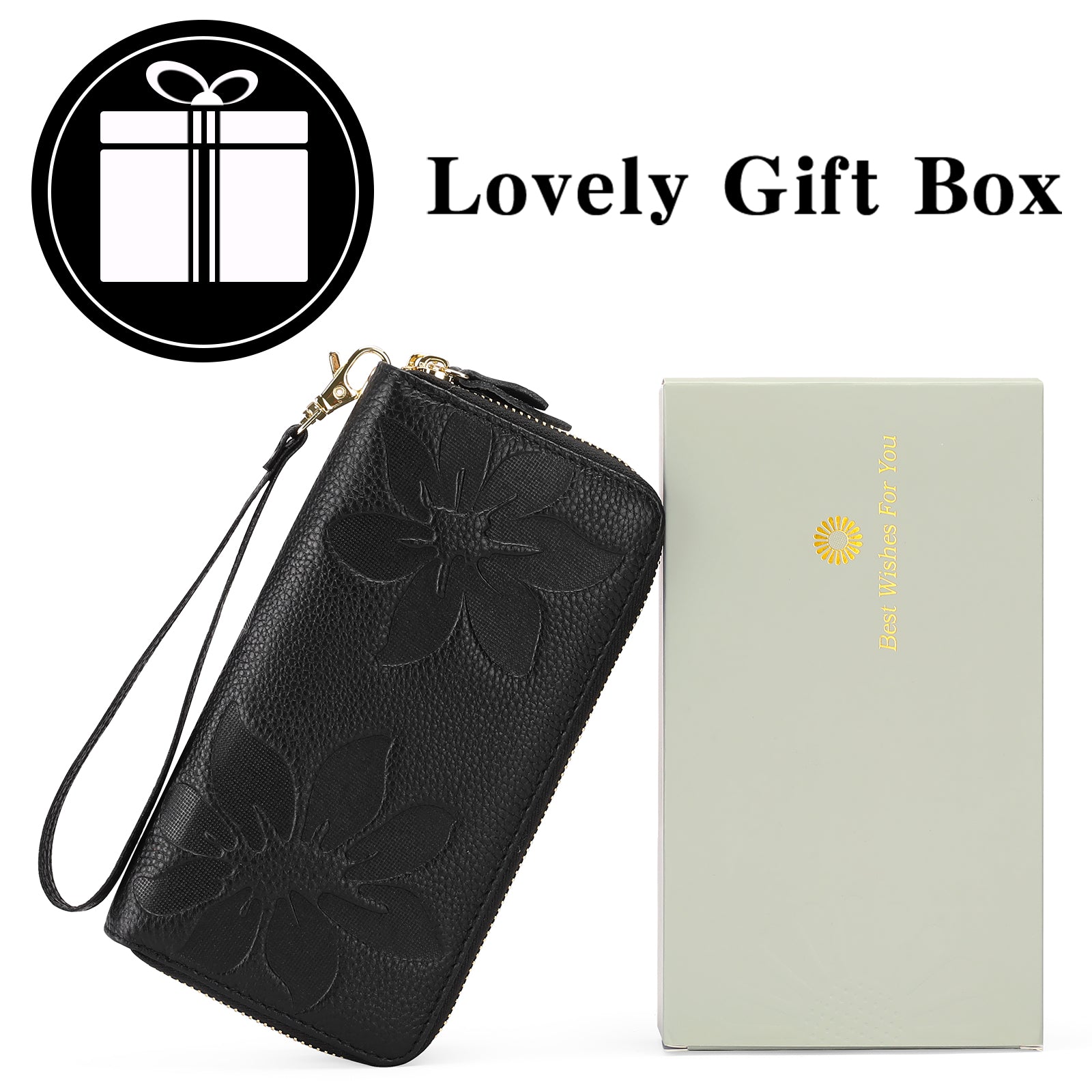 3.Unique Features -- Made of high quality leather.Durable zipper and snap for long time use.Each wallets women comes with a wrist strap.