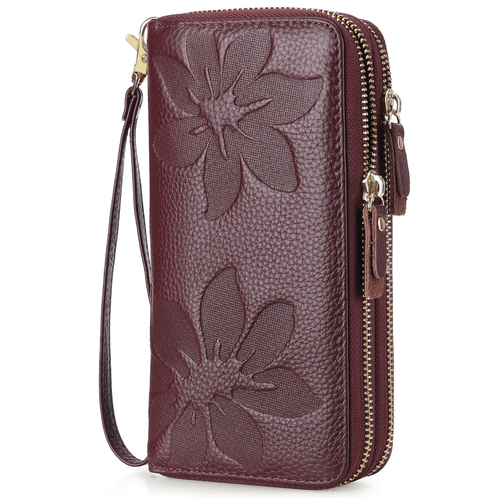 FALAN MULE Women's Wallet Large Capacity Double Zip Around Credit Card Holder Leather Ladies Wallet with RFID Blocking Phone Wristlet Purse
